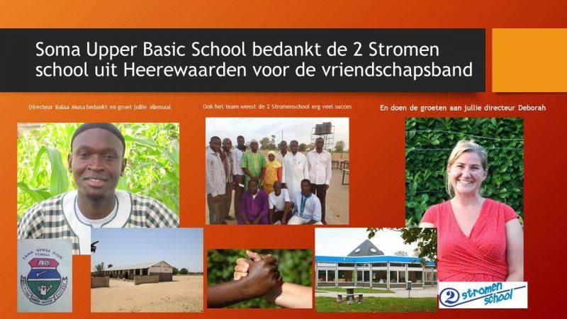 Een mooi project is de koppeling van de Basisschool de Tweestromenschool uit Heerewaarden aan de Upper Basic school in Jara Soma in midden Gambia. De bedoeling is dat de we de kinderen hier laten zien en beleven hoe de kinderen in Gambia leven en ze daar te helpen doormiddel van leermiddelen en allerlei zaken die ze daar niet hebben.